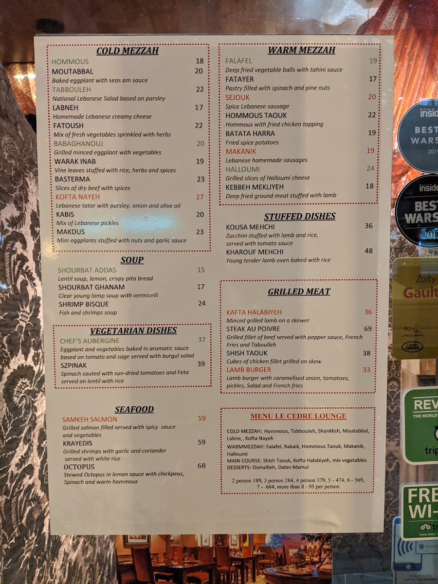 Welcome to Le Cedre 61, a culinary gem nestled in the heart of Warsaw, Poland. This enchanting Lebanese restaurant might boast a modest façade, but stepping inside reveals a warm, inviting atmosphere reminiscent of Lebanon's vibrant culture. With comfortable seating and tasteful décor, your experience begins with a welcoming embrace.